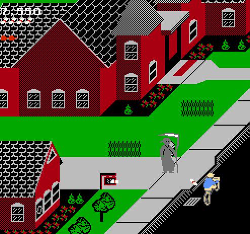 He was playing Paperboy, the game where you control a kid on a bike, trying to navigate your delivery route without crashing into various obstacles, including recklessly-driven cars, and even the Grim Reaper himself, who’s just hanging out on the 8-bit suburban sidewalk among the doghouses and white picket fences like he’s one of the neighbors. Whether Pete picked that game because of its morbid parallels to Trevor’s death, or simply because it was one of his all-time favorite Nintendo games, I don’t know. We took turns playing until dinnertime, neither of us talking, except for an occasional “Oh crap!” from Pete whenever he smashed into a skateboarder, or shattered a customer’s window with an off-target newspaper toss. Before I climbed back out the window to head home, Pete lifted my mask and hugged me as tight as his little arms could, like he couldn’t let me leave, until finally I kissed the top of his head and slithered out of his embrace.